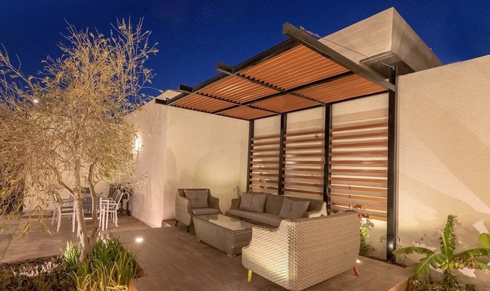 مظلات أو أسقف خفيفة تعمل على الظلال وتحمي من الشمس.